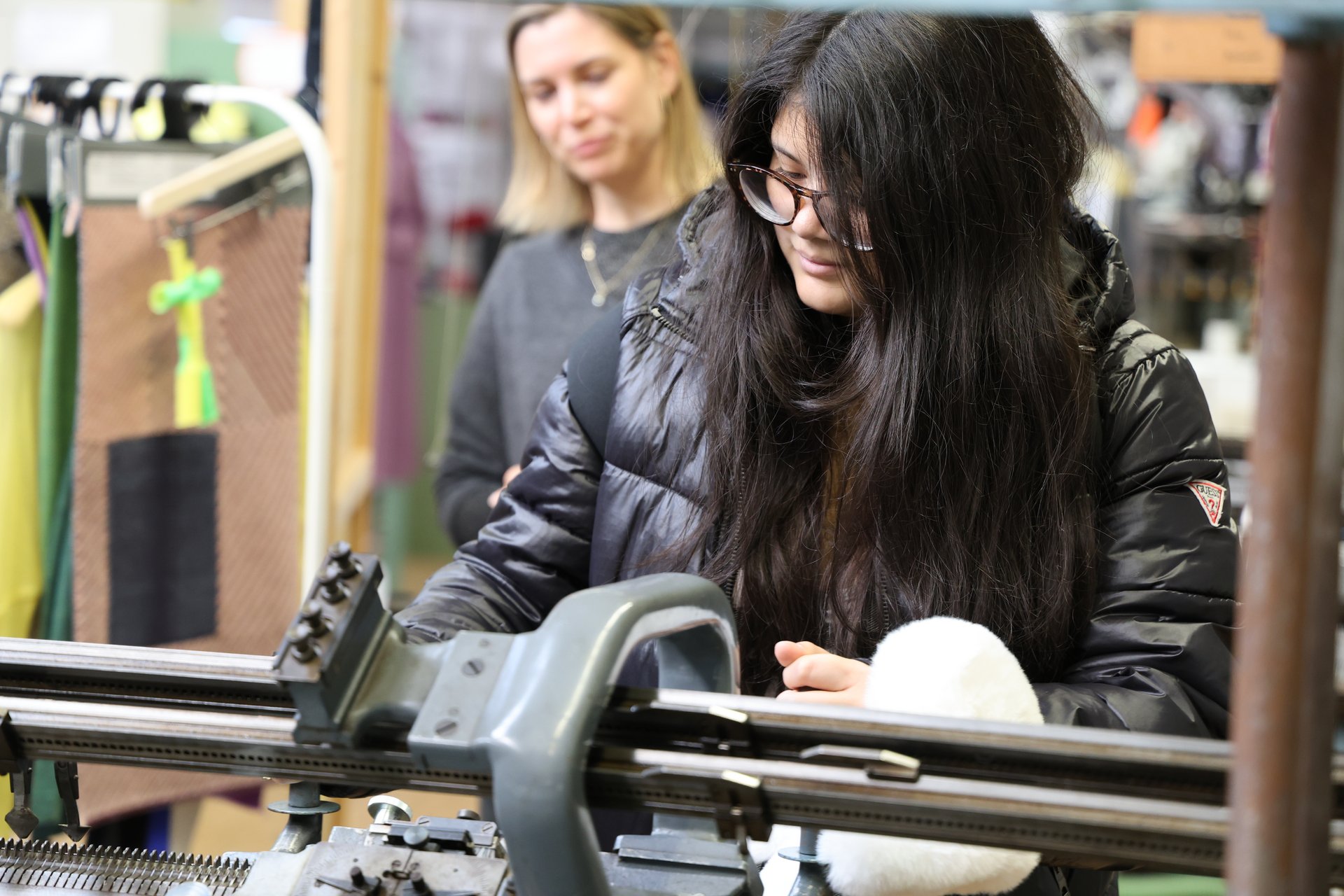 Auch an der Hochschule Reutlingen erhielten die Gäste einen praxisnahen Eindruck von den vielfältigen Studienmöglichkeiten. Besonders beeindruckt zeigten sich die Schülerinnen und Schüler von den Laboren der TEXOVERSUM Fakultät Textil, wo sie unter Anleitung beispielsweise an einer Rundstrickmaschine oder einer Handflachstrickmaschine arbeiten durften.