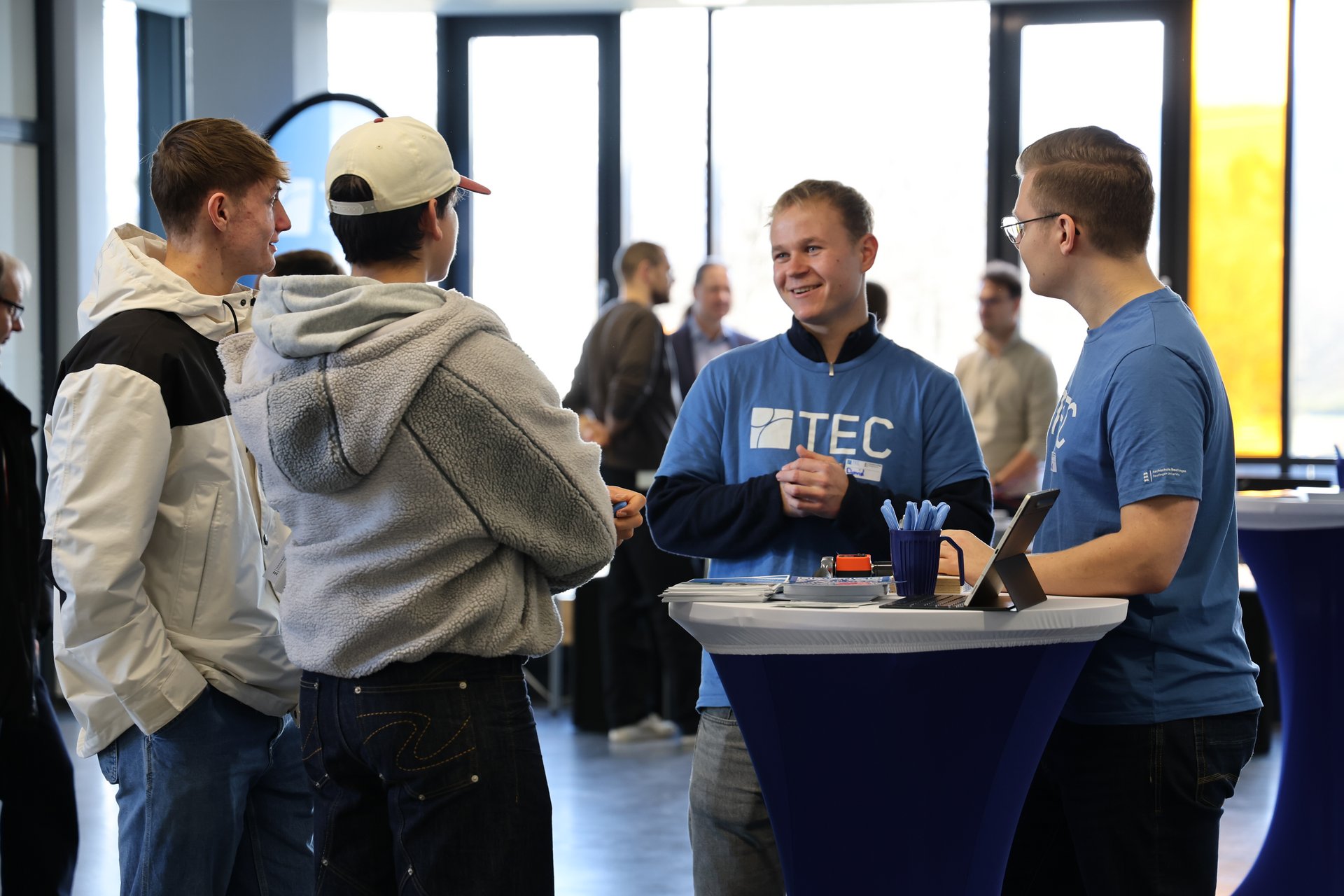Im Mittelpunkt stand auch dieses Mal wieder das persönliche Gespräch. An den zentralen Infoständen der Hochschule, darunter die Studienberatung, das Center for Entrepreneurship, das Studierendenparlament, der Bereich Studienstart und das Reutlingen International Office, erhielten Interessierte individuelle Beratung zu Themen wie Studienorientierung, internationalen Austauschprogrammen, ersten Gründungsideen oder dem gelungenen Start ins Studium. Auch die Knowledge Foundation war vertreten und informierte über ihre berufsbegleitenden Studien- und Weiterbildungsangebote.