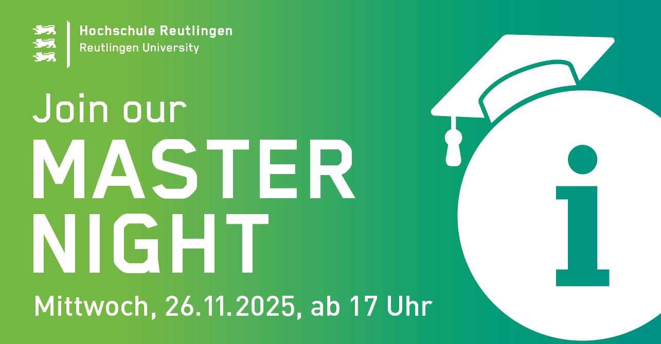 Welche Master-Studiengänge gibt es an der Hochschule Reutlingen? Welcher Master passt zu meinem Bachelor und wie läuft er genau ab? Die digitale Master Night ist die optimale Gelegenheit für alle Interessierten, sich im persönlichen Gespräch über das Masterstudium, Forschungs- und Promotionsmöglichkeiten sowie Weiterbildungsprogramme an der Hochschule zu informieren.