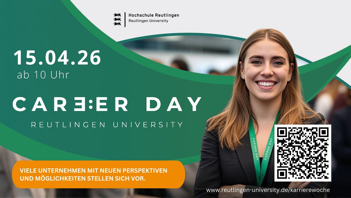 Komm zum Career Day - Reutlingen University und finde dein Traumunternehmen! Du hast große Ziele und möchtest in Top-Unternehmen Fuß fassen? Dann nutze die Chance auf dem Career Day am 15.04.26 und baue bereits jetzt dein Netzwerk auf oder poliere einfach deine Bewerbungen an nur einem Tag auf Hochglanz!